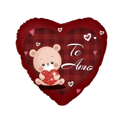 BALÃO METALIZADO CORAÇÃO DE URSO TE AMO 17 POLEGADAS