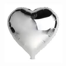 O item na imagem é um balão metalizado em formato de coração na cor prata.<span jsc