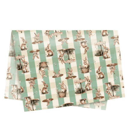 Design Atemporal e Elegante: A estampa “Bunny” em tons suaves sobre a base marfim confere um ar artesanal e sofisticado, fugindo do óbvio e agregando valor imediato ao presente.