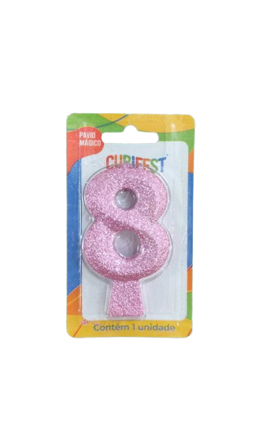 VELA DE ANIVERSÁRIO CONCEPT GLITTER ROSA BEBE N 8- CURIFEST