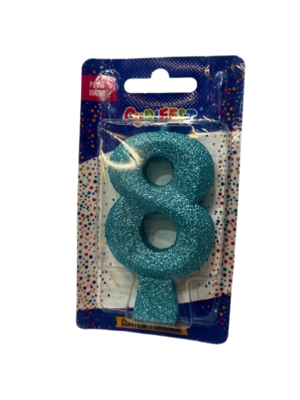 Vela de Aniversário Concept Glitter – Número 8 (Cor Tiffany)