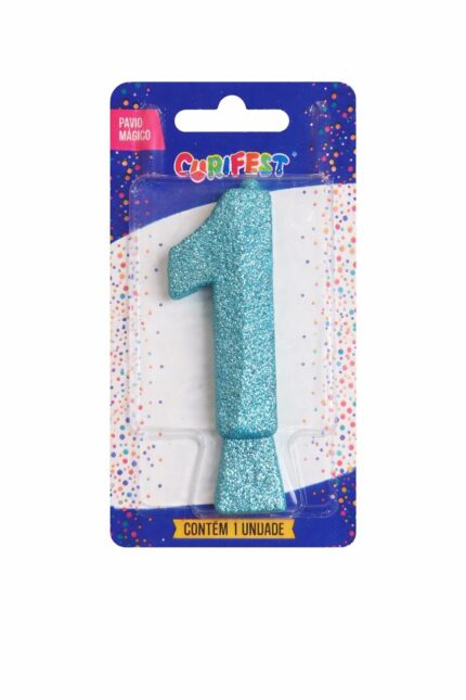Vela de Aniversário Concept Glitter – Número 1 (Cor Tiffany)
