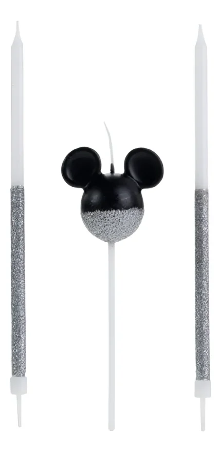 VELA DE ANIVERSÁRIO MICKEY 360 MEIO GLITTER PRATA- SILVER