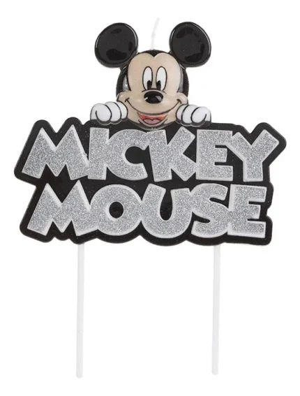 VELA DE ANIVERSÁRIO MICKEY COLORIDO GLITTER PRATA- SILVER