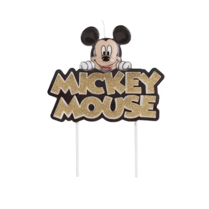 VELA DE ANIVERSÁRIO MICKEY COLORIDO GLITTER DOURADO- SILVER