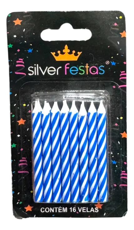 VELA DE ANIVERSÁRIO PALITINHO ESPIRAL AZUL C/16UNID- SILVER