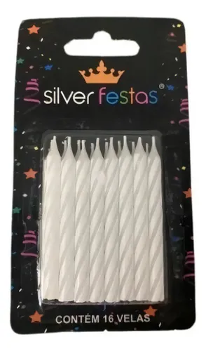 VELA DE ANIVERSÁRIO PALITINHO ESPIRAL BRANCA C/16UNID- SILVER