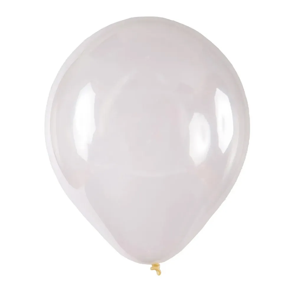 Os balões cristal são ideais para misturar com outras cores e criar um efeito leve e contemporâneo. Pacote com 50 unidades.