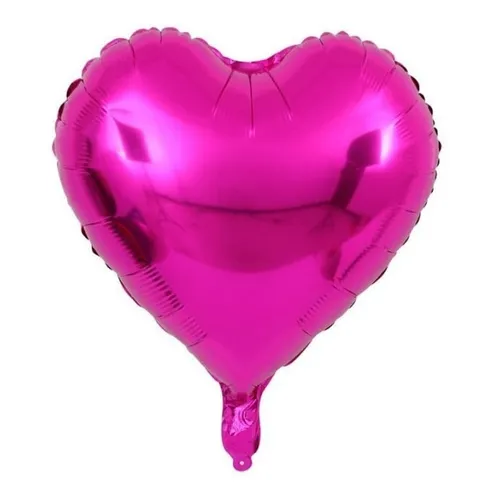 Este produto é um balão metalizado em formato de coração na cor pink.<span jsc