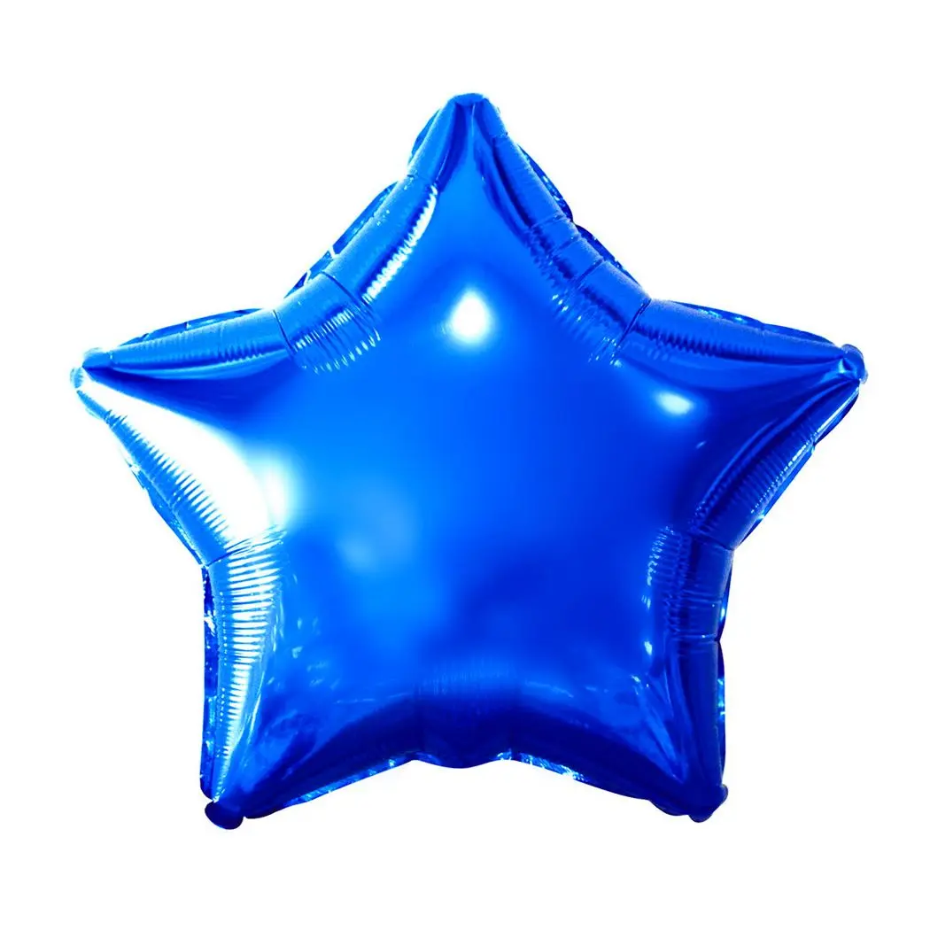 Balão em formato de estrela com acabamento metalizado azul.