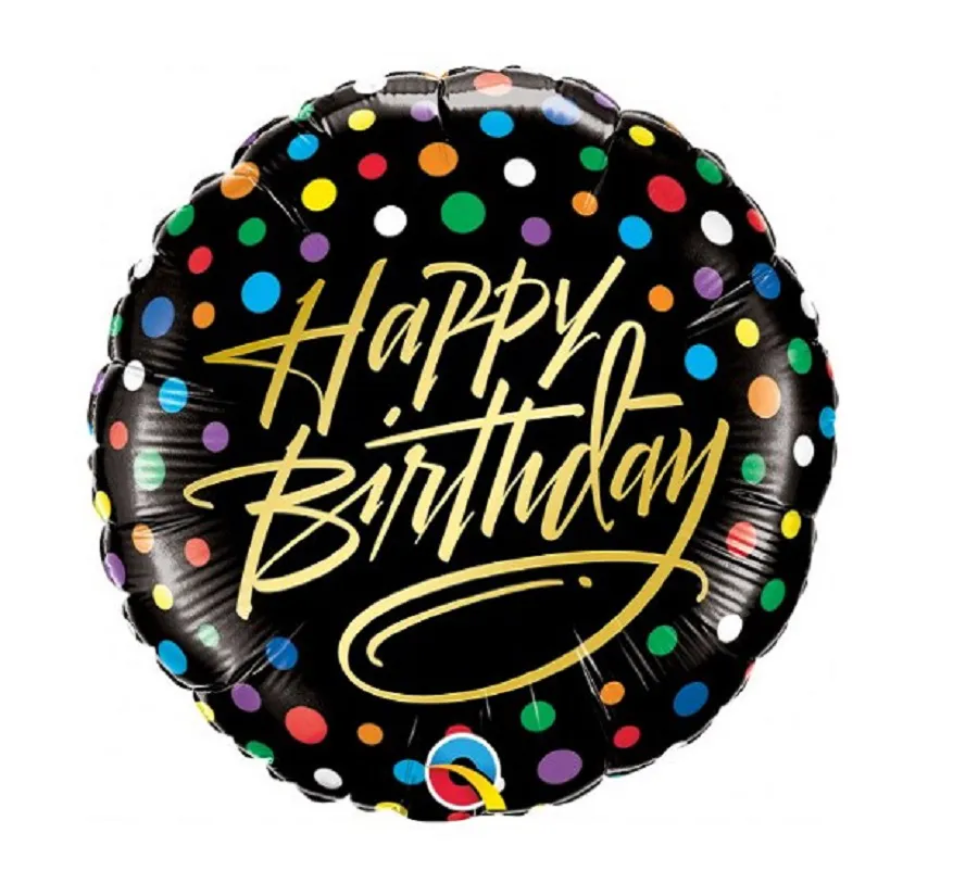 BALÃO METALIZADO HAPPY BIRTHDAY PRETO COM BOLINHAS 45CM