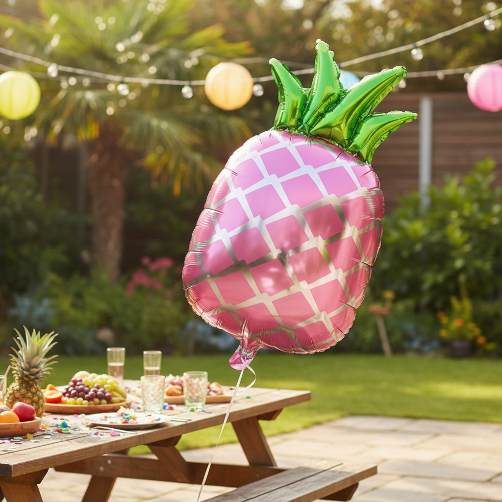 BALÃO METALIZADO MORANGO, ABACAXI AMARELO OU ROSA 45X45CM – 1 UNIDADE
