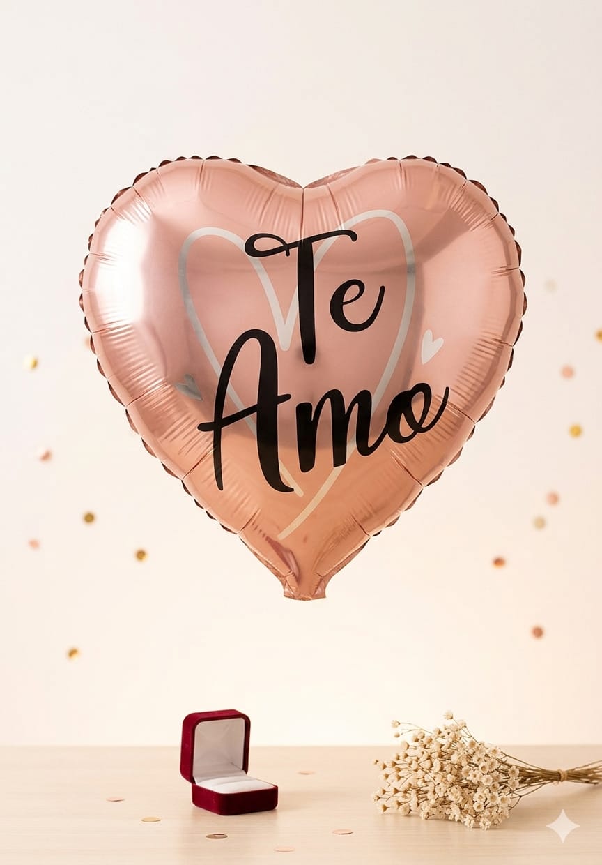 O Balão Metalizado Coração “Te Amo” (18 polegadas/45cm) é o item ideal para declarações apaixonadas, Dia dos Namorados e surpresas românticasFeito de poliamida brilhante, possui válvula automática que segura o ar, sendo versátil para encher com gás hélio (flutua) ou ar normal com bomba manual