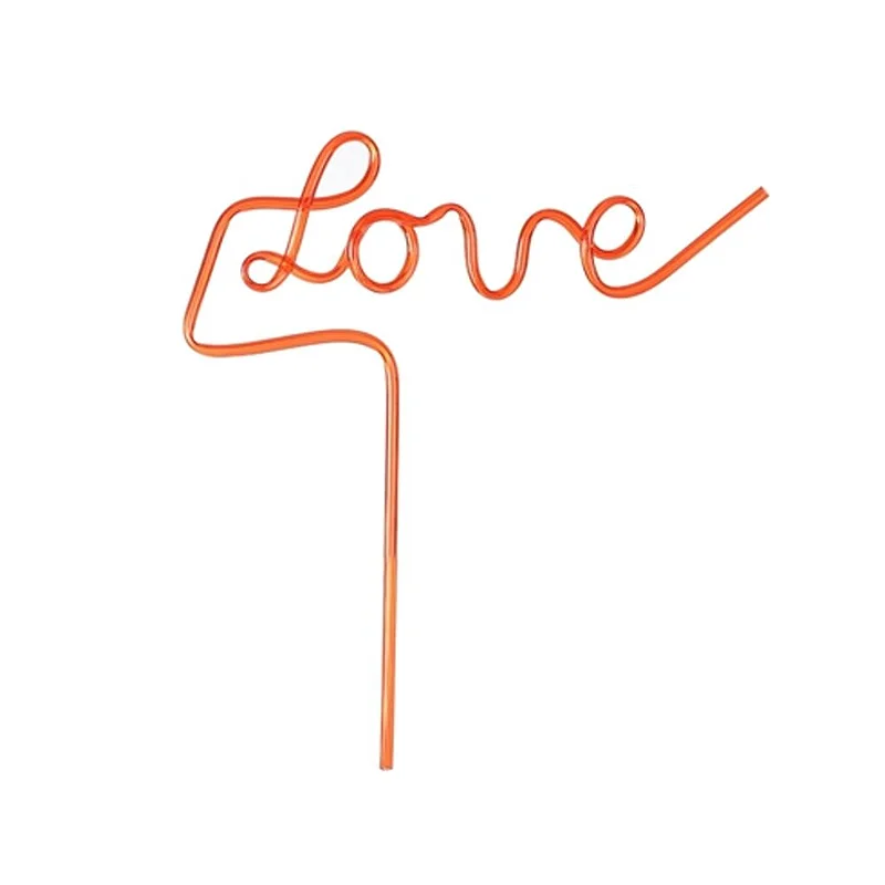 Canudo reutilizável de plástico com design divertido na palavra “LOVE”.