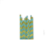 Canudo de Papel – Listrado Dourado e Azul Bebê (Silver Fest)