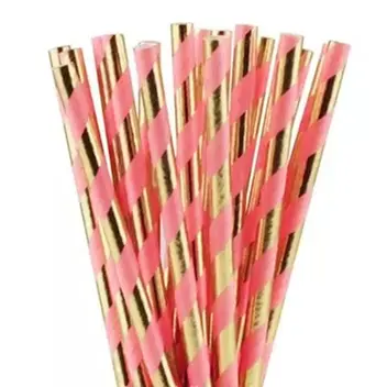 Canudo de Papel – Listrado Dourado e Rosa Bebê (Silver Fest)
