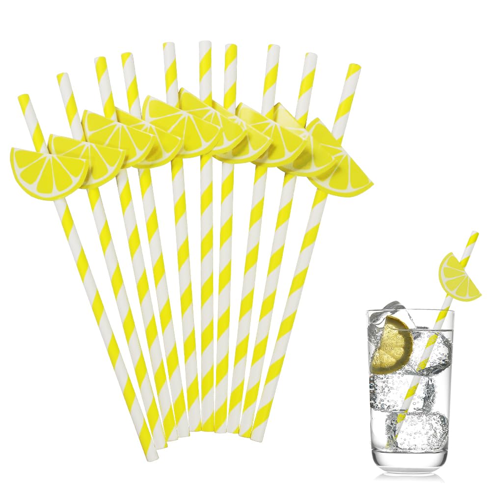 Canudo de Papel com Tag – Tema Lemon (20 Unidades)