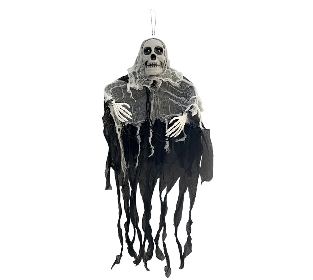 A Caveira Fantasma Assombração é um enfeite que leva a atmosfera de terror a outro nível. Com visual macabro e acabamento detalhado, ela pode ser usada pendurada, apoiada em mesas ou em cenários mais elaborados. É perfeita para criar aquele clima assustador que todo Halloween pede, trazendo mistério e impacto à decoração.