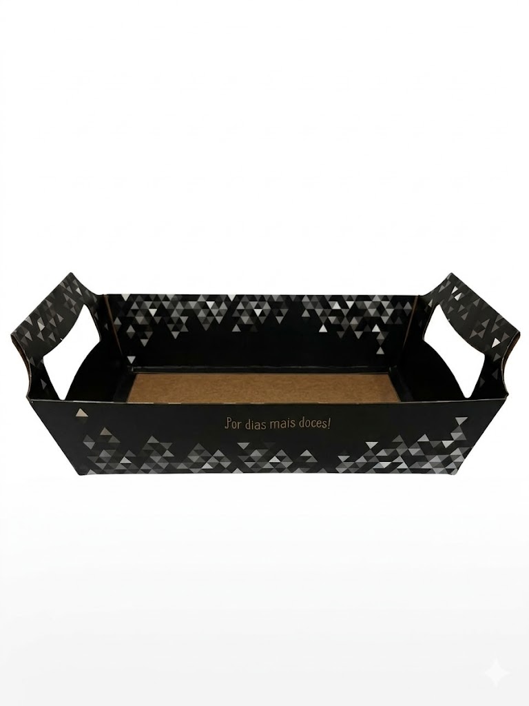 • Material de Alta Gramatura: Fabricada em papel cartão reforçado, garante que a cesta mantenha suas linhas retas e laterais estruturadas, mesmo quando preenchida com itens mais densos.