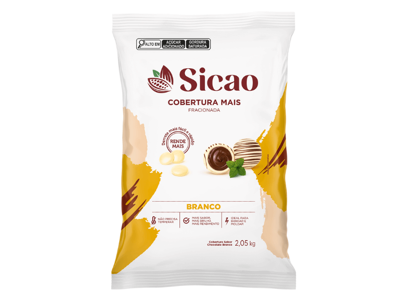 A Cobertura Sicao Mais Branco é a escolha inteligente para quem produz em grande escala e busca a máxima eficiência. No formato de gotas, ela elimina o tempo de corte e facilita o derretimento, oferecendo uma cor branca límpida e um sabor lácteo equilibrado que valoriza qualquer finalização.