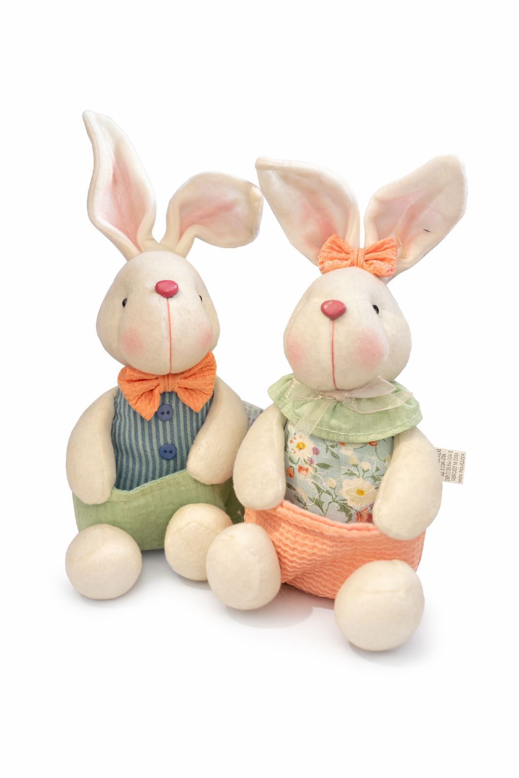 COELHO DECORATIVO COM BOLSO FRONTAL FLORAL / LISTRAS AZUIS COLEÇÃO HAPPY SUNDAY