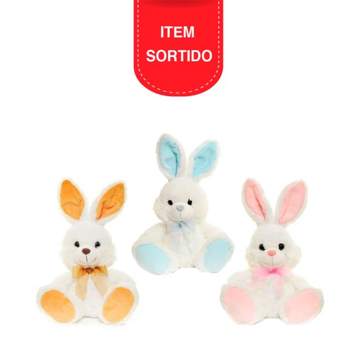 COELHO PELUCIA COM LAÇO NO PESCOÇO BRANCO 24CM – CROMUS