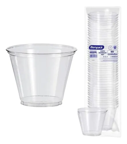 COPO DE PLÁSTICO PET 260ML PARA TAMPA BOLHA COM 50UN – BOMPACK