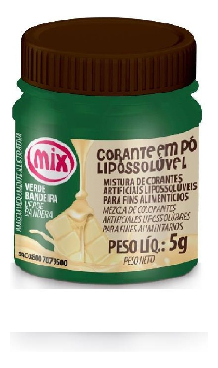 Ideal para chocolates e preparos com base lipídica, o Corante em Pó Lipossolúvel Verde Bandeira da Mix proporciona cor intensa e acabamento impecável em suas criações. Perfeito para doces, bombons, trufas e muito mais.