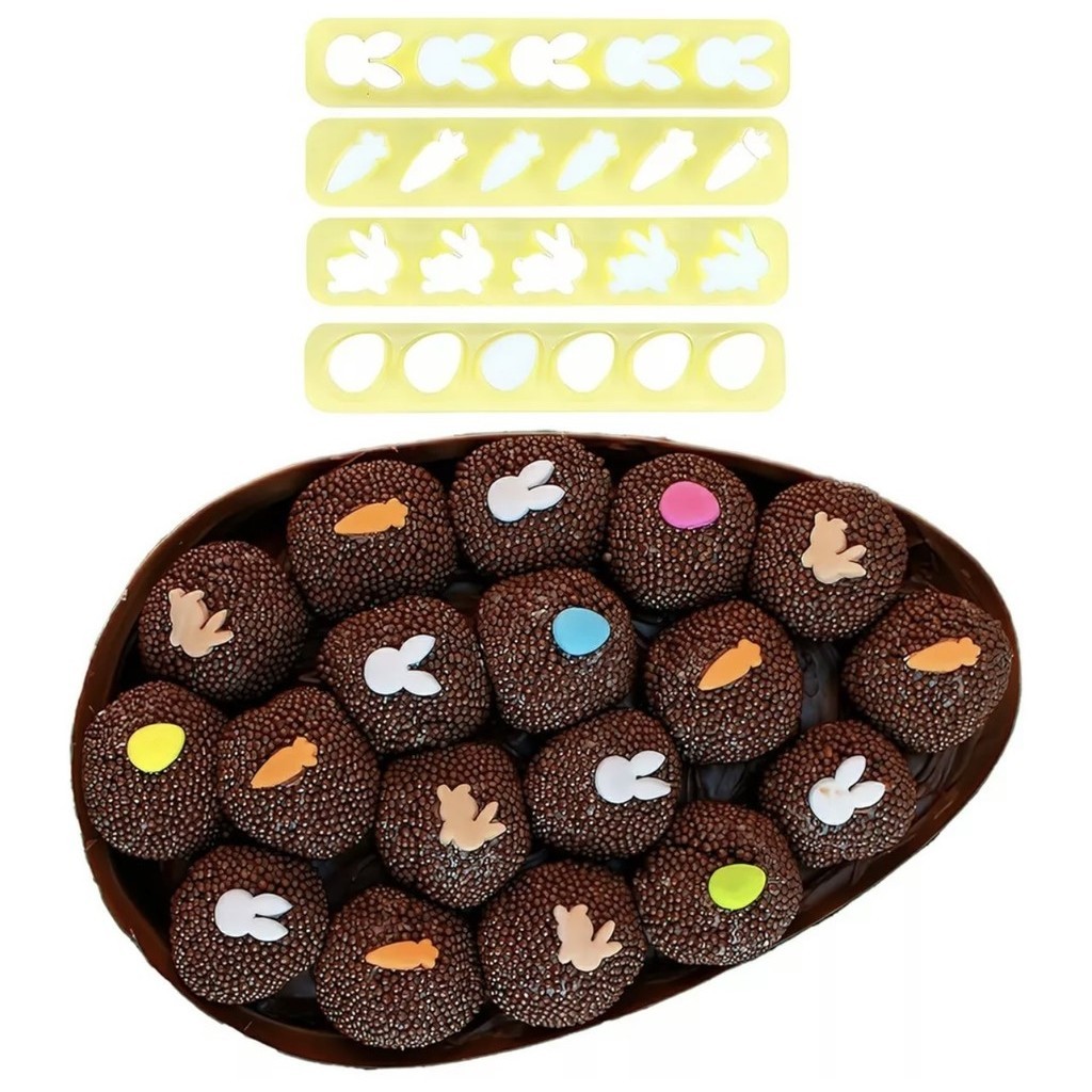 Com 4 modelos versáteis, esse kit permite cortar e marcar detalhes perfeitos em pasta americana, biscoitos, chocolates e outros materiais. Um item essencial para confeiteiros e artesãos que desejam dar um toque profissional e temático às suas criações de Páscoa!