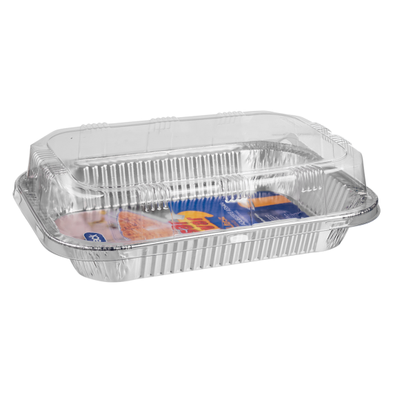 Esta embalagem é a escolha estratégica para preparos de grande porte. Com capacidade de 2,5 litros, ela é robusta o suficiente para suportar camadas densas de lasanha, empadões ou assados familiares, mantendo a estrutura sem deformar.
