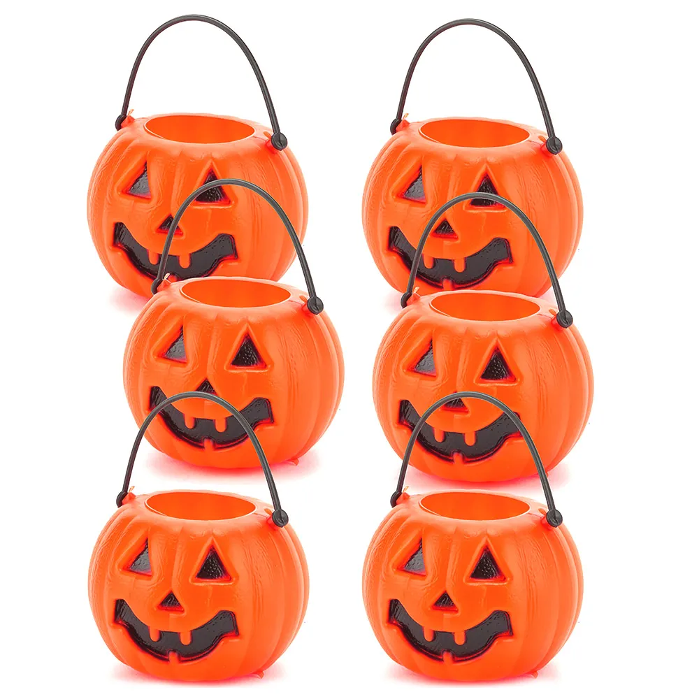ENFEITE PLÁSTICO MINI BALDE ABÓBORA COM 6 UNIDADES