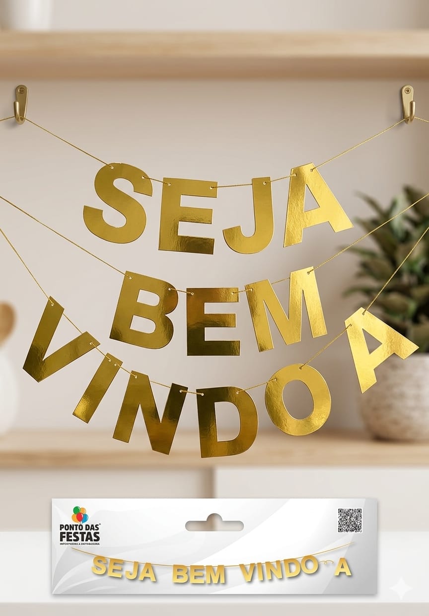A Faixa de Papel “Seja Bem-Vindo” Dourada é o toque de receptividade e brilho que toda celebração de boas-vindas merece. Com um acabamento metalizado que reflete a luz de forma festiva, esta faixa comunica alegria e hospitalidade, servindo como o cartão de visitas visual da sua decoração.