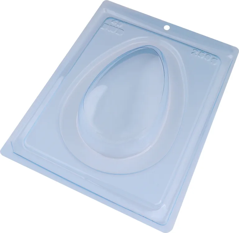 FORMA PARA CHOCOLATE EM ACETATO COM SILICONE 3 PARTES OVO LISO CASCA FINA TAMANHO 250G – BWB