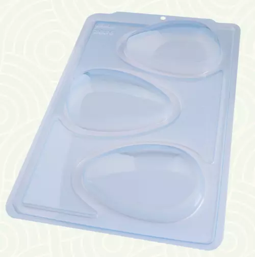 FORMA PARA CHOCOLATE EM ACETATO COM SILICONE 3 PARTES OVO LISO CASCA FINA TAMANHO 250G – BWB