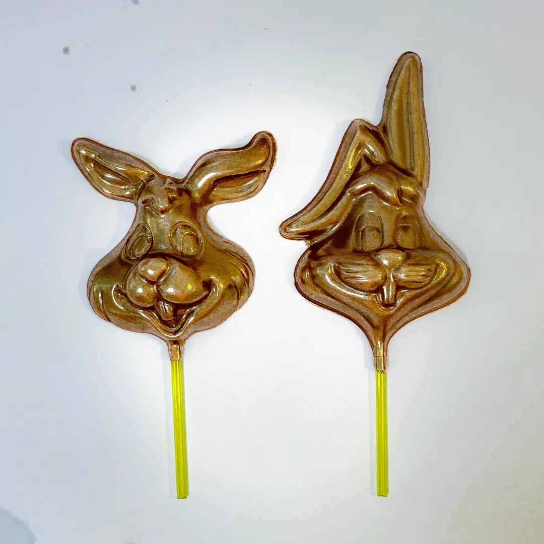 Pirulitos irresistíveis para a Páscoa! Essa forma permite criar chocolates no formato de coelho, garantindo doces encantadores e temáticos.