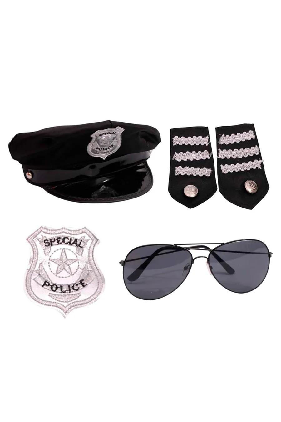 Inclui distintivo, algemas e acessórios temáticos