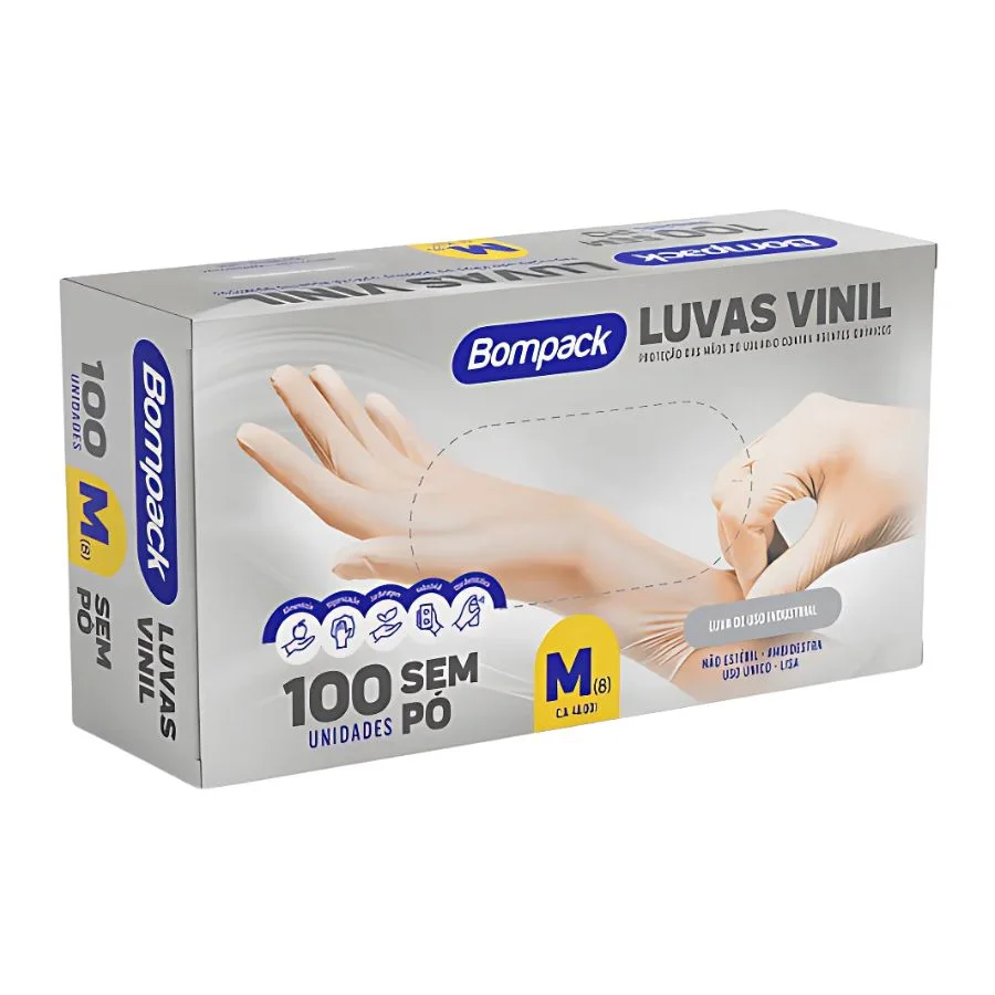 As Luvas de Vinil Bompack tamanho M oferecem segurança, conforto e praticidade no manuseio de alimentos, higiene e limpeza. Sem pó, evitam reações alérgicas e proporcionam proteção eficiente.