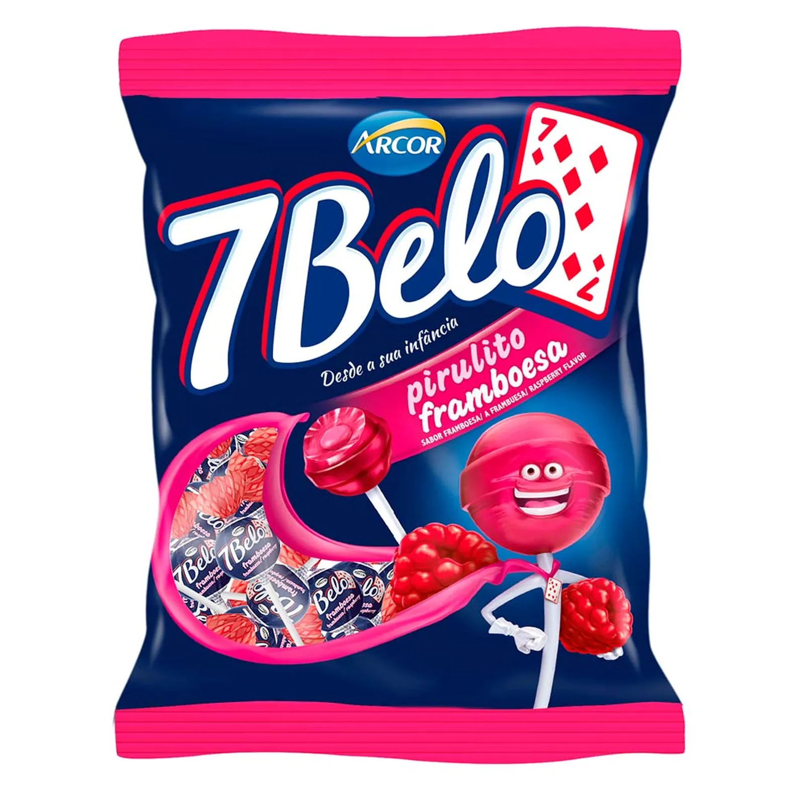 O produto na imagem é o pirulito da marca Arcor sabor Framboesa 7 Belo.<span jsc