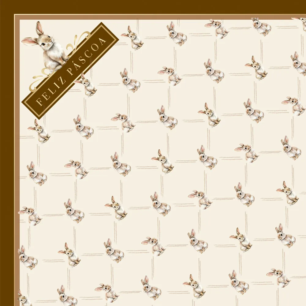 Design Atemporal e Elegante: A estampa “Bunny” em tons suaves sobre a base marfim confere um ar artesanal e sofisticado, fugindo do óbvio e agregando valor imediato ao presente.