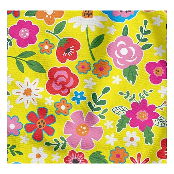 Estampa: Flores coloridas sobre fundo amarelo