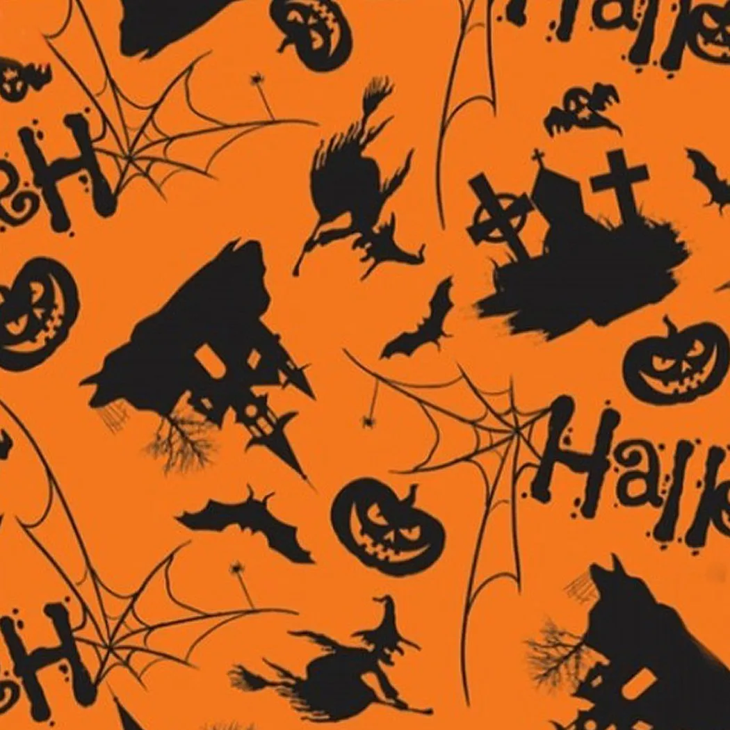 TNT Estampado Halloween – Túmulo (Laranja e Preto) 40g/m² (Largura 1,40m)