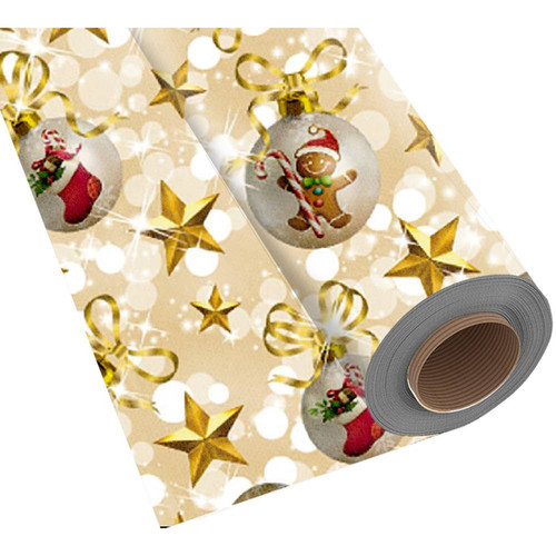 • Estampa: Natal Gold (Geralmente apresenta motivos natalinos como sinos, estrelas, árvores ou arabescos em tons dourados sobre um fundo contrastante, como vermelho, verde ou branco).