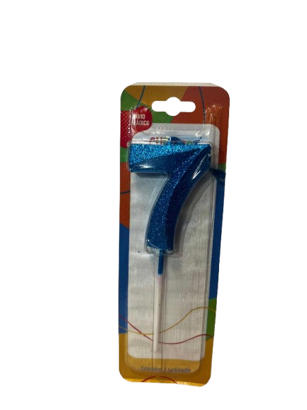 VELA DE ANIVERSÁRIO CONCEPT GLITTER AZUL NÚMERO 7 – CURIFEST