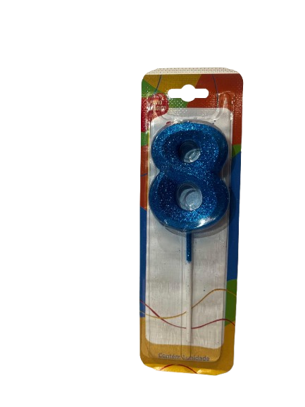 VELA DE ANIVERSÁRIO CONCEPT GLITTER AZUL NÚMERO 8 – CURIFEST