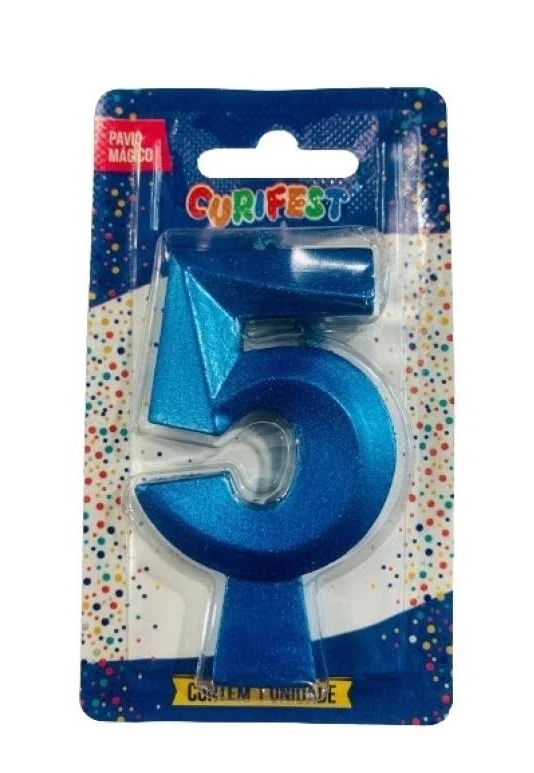 VELA DE ANIVERSÁRIO CONCEPT METALLIC AZUL N 5- CURIFEST