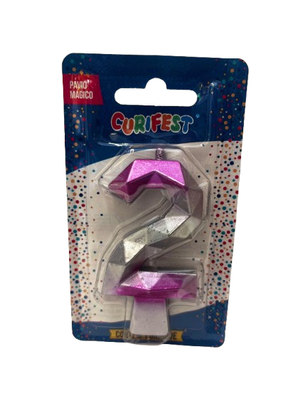 VELA DE ANIVERSÁRIO DIAMOND PRATA COM ROSA NÚMERO 2 – CURIFEST