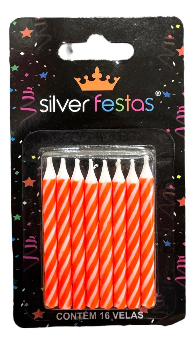 VELA DE ANIVERSÁRIO PALITINHO ESPIRAL LARANJA C/16UNID- SILVER