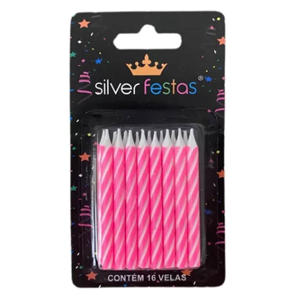 VELA DE ANIVERSÁRIO PALITINHO ESPIRAL PINK C/16UNID- SILVER
