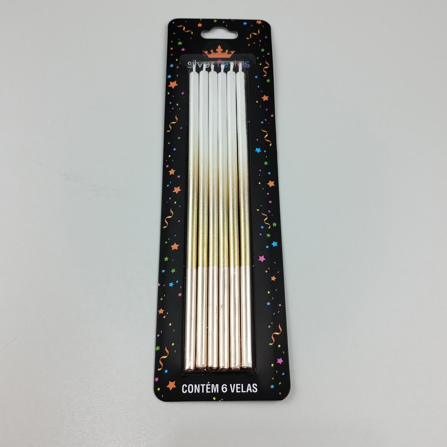 VELA DE ANIVERSÁRIO PALITO GIGANTE DEGRADE PEROLA C/ DOURADO- SILVER
