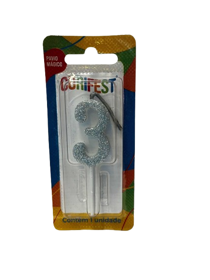 VELA DE ANIVERSÁRIO SINGLE GLITTER PRATA N 3- CURIFEST
